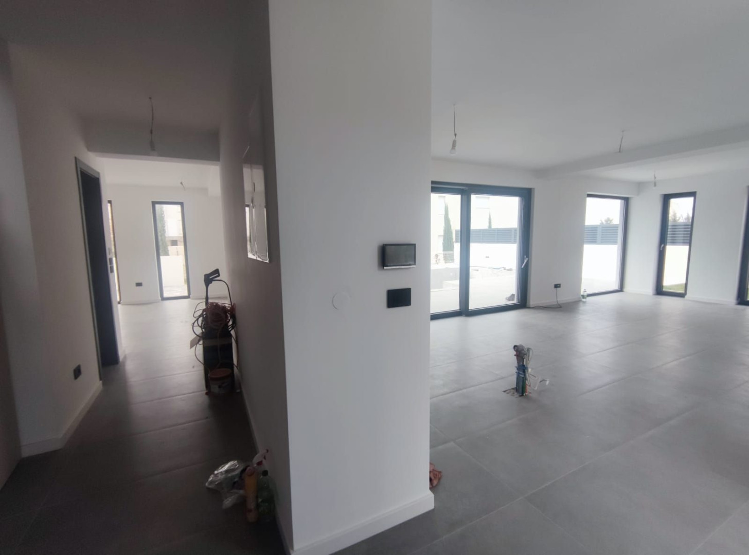 EXTERIÉR A DOPLŇKOVÉ FUNKCE Z obývacího pokoje a multimediální místnosti je přístup na prostornou venkovní terasu, kde se nachází bazén s vířivkou. Vedle bazénu je moderní letní kuchyně a prostor určený pro socializaci. Vila je vybavena podlahovým vytápěním a klimatizací ve všech místnostech, přičemž kvalitní keramika, parkety a tepelná izolace (10 cm polystyren) zajišťují energetickou účinnost a komfort po celý rok. Pozemek o rozloze 507 m² je pečlivě upravený - cesty jsou dlážděné kamenem a zahrada je ozdobena trávníky a středomořskými rostlinami. Vila se dále vyznačuje velkými prosklenými stěnami a francouzskými okny se stopsol sklem, které zajišťují dostatek přirozeného světla a pocit prostornosti. Tato vila představuje ideální kombinaci moderního designu, špičkové konstrukce a funkčnosti, nabízí maximální pohodlí v těsné blízkosti moře.